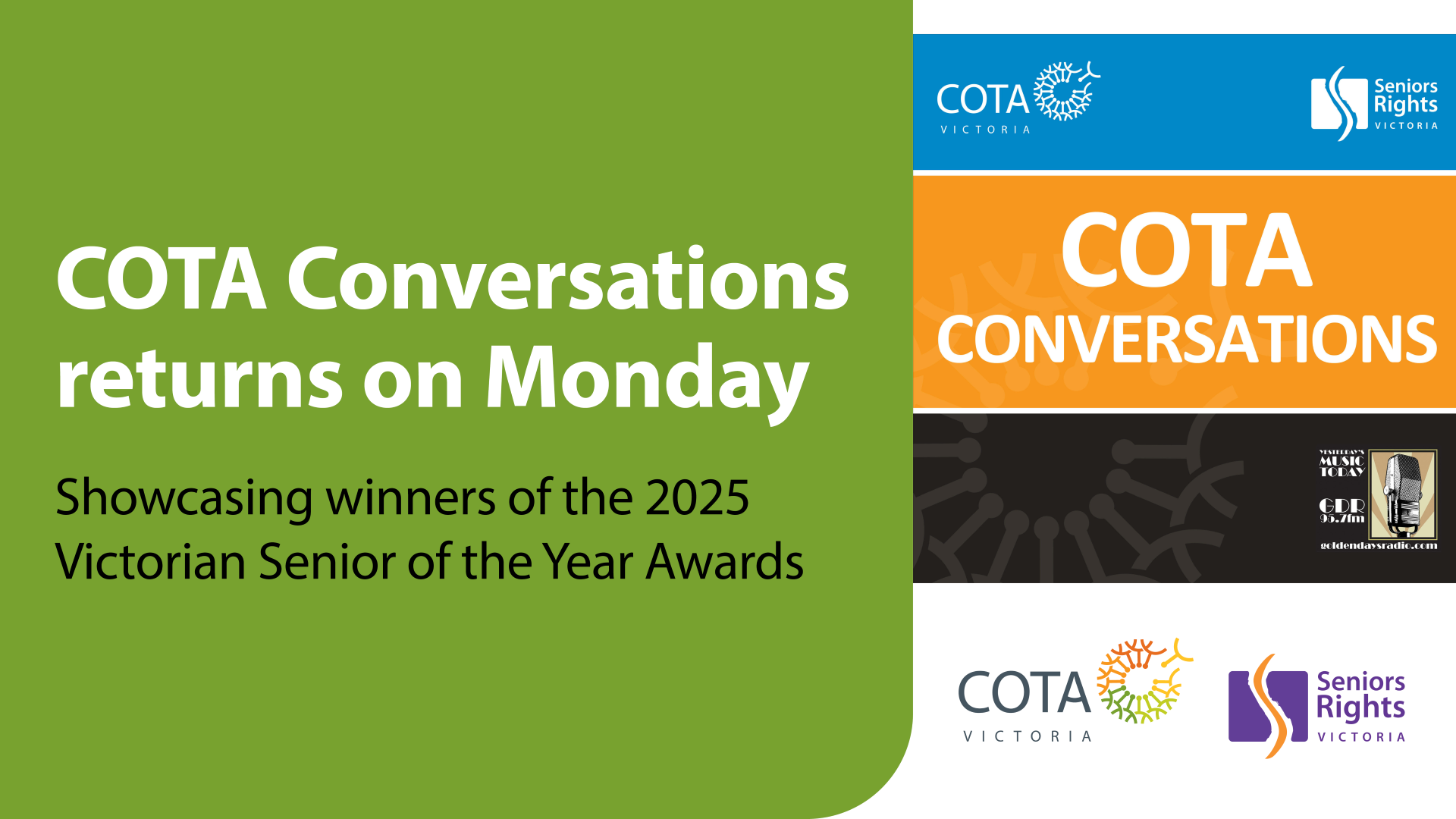 COTA Conversations returns for a new year on Monday, 2 February with a special series that shines a spotlight on the well-deserving winners of the 2025 Victorian Senior of the Year Awards program.